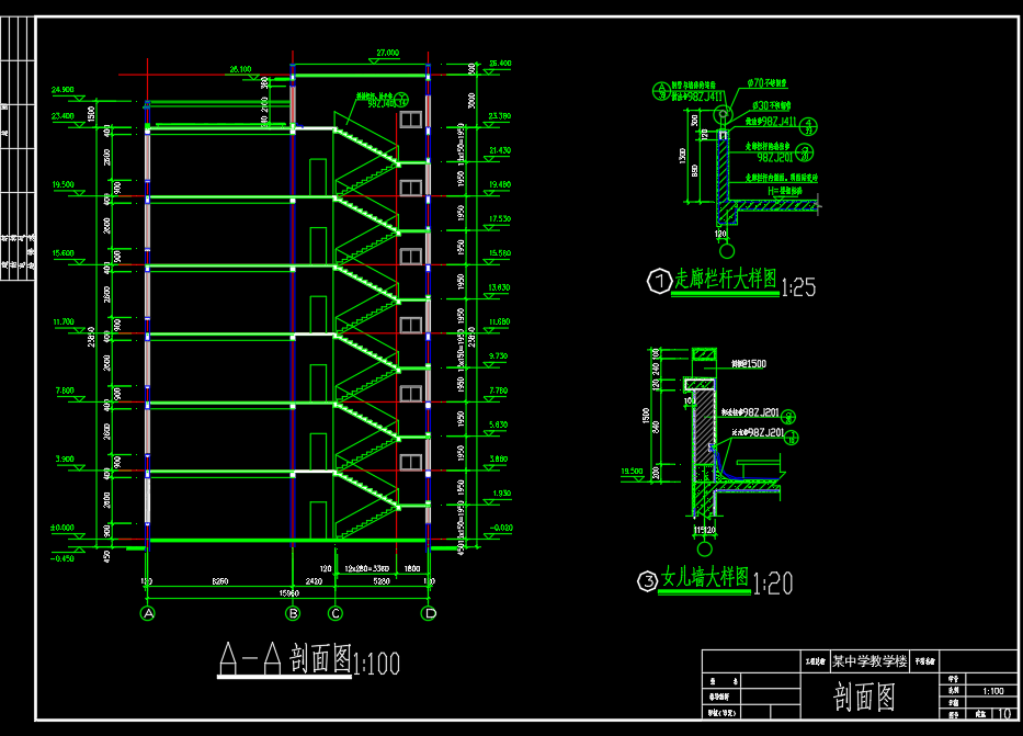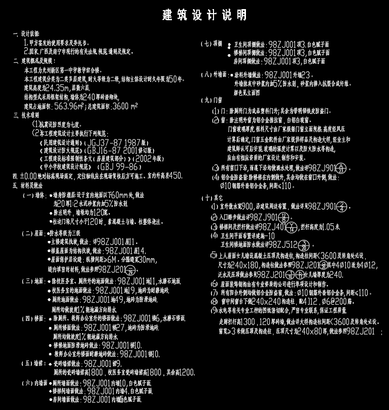 6层,5283平米框架教学楼毕业设计(计算书、建筑、结构图)