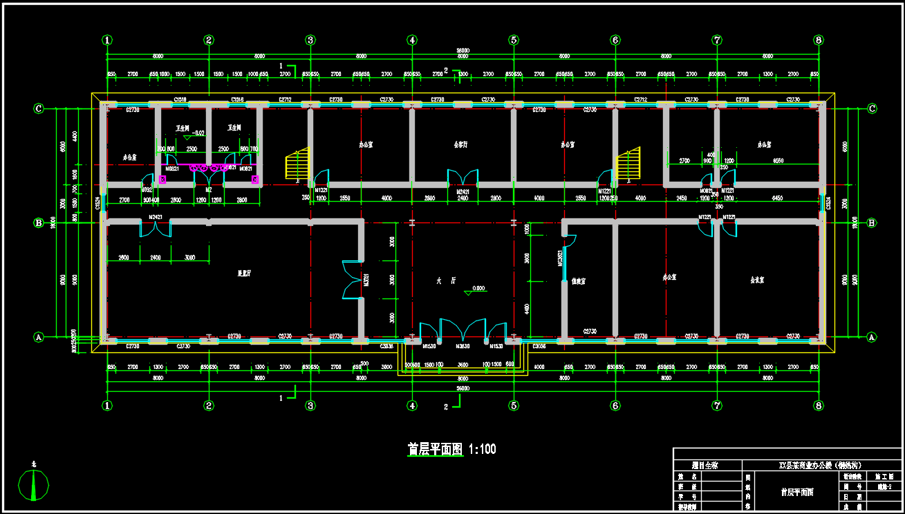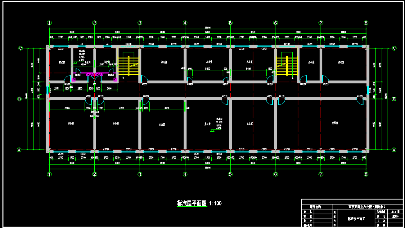 【6层】6048平米钢框架办公楼设计(计算书、建筑、结构图、实习报告)