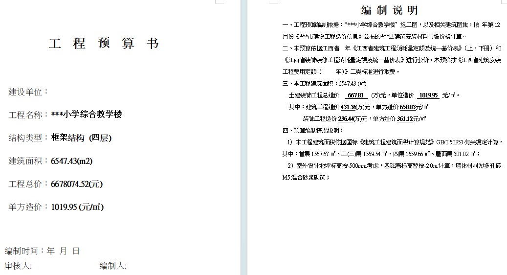 这份针对6547.43㎡四层框架综合教学楼的工程预算书,是项目成本控制的核心依据。它基于详细的CAD图纸进行工程量计算,确保了每一项混凝土、钢筋及装饰工程量的准确性。严谨的预算能有效预估总投资,为资源调配与资金管理提供可靠数据支撑,是保障工程顺利实施、避免成本超支的关键专业文件。相关学习资料对掌握此类项目的造价管理具有重要参考价值。