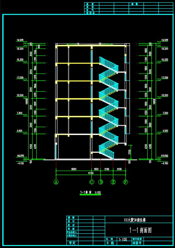 3694平米六层商住楼(计算书、部分建筑、结构图)