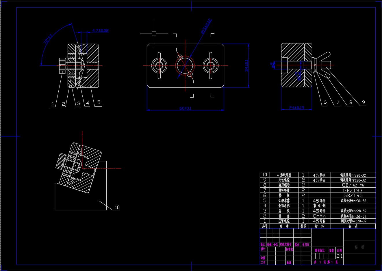 制定三头钻底座(图5-29)的加工工艺,设计钻铰Ф8H7孔的钻床夹具