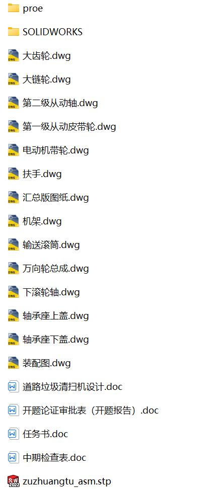 道路垃圾清扫机设计【论文+CAD图纸+proe三维+SW三维+开题报告+任务书】扫地机 垃圾清理机 扫地车 扫地机器人 清洁机器人