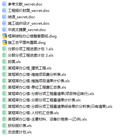 浙江某 2677.9㎡三层框架办公楼施工组织设计及报价工程量清单(施工组织设计5万多字、CAD建筑结构图、进度计划表)