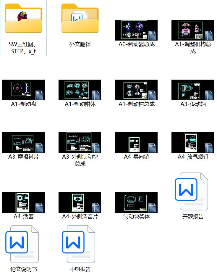 汽车盘式制动器设计(论文说明书、13张CAD图纸、SW三维图、STEP、x_t、开题报告、中期报告、外文翻译……)
