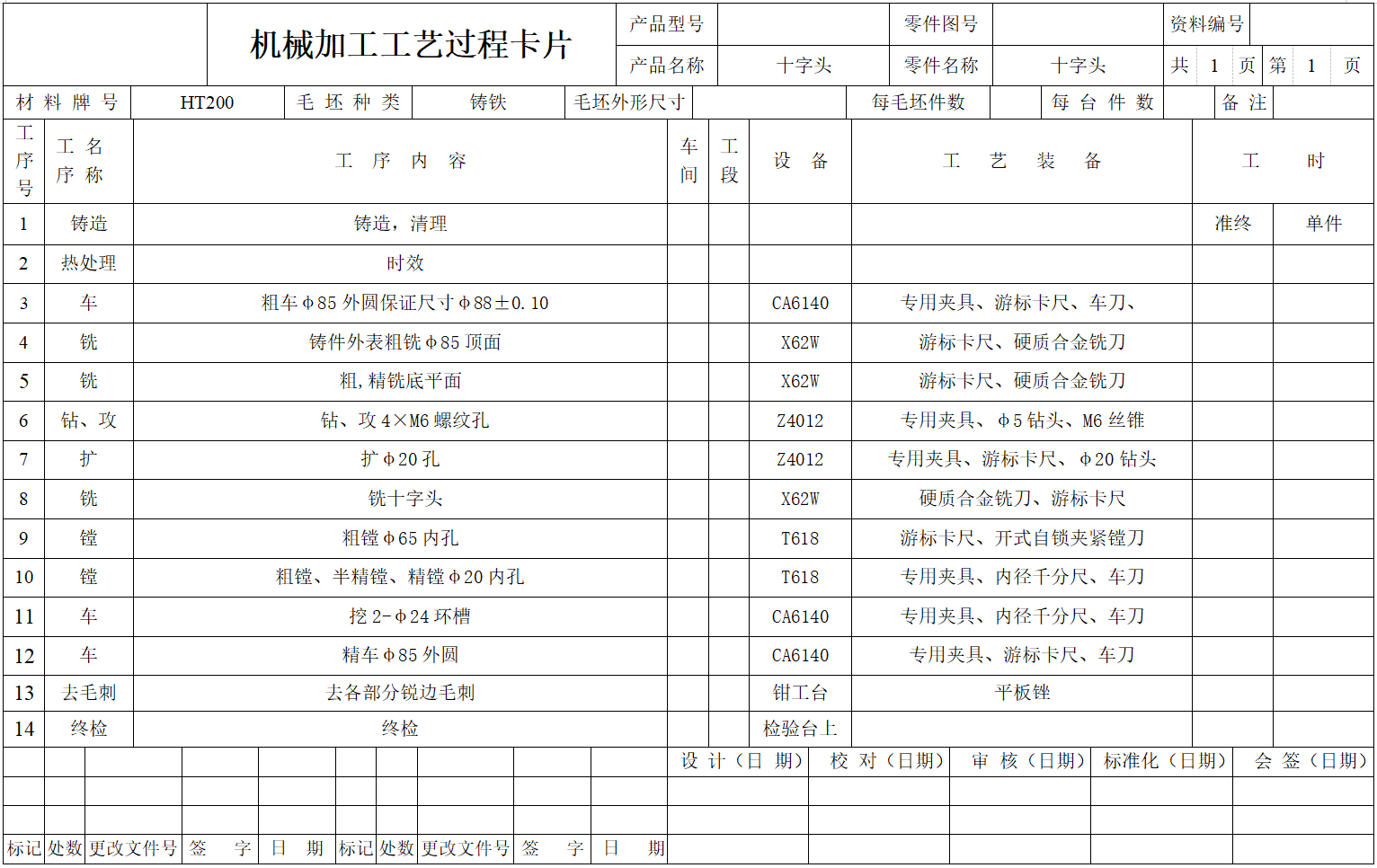 毕业设计_十字头工艺规程及镗Φ20孔夹具设计(说明书+CAD图纸+工序卡+过程卡+文献综述)