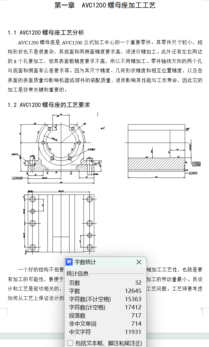 工艺夹具-AVC1200螺母座的机械加工工艺及镗孔夹具设计(论文+CAD+1张工序卡+过程卡)