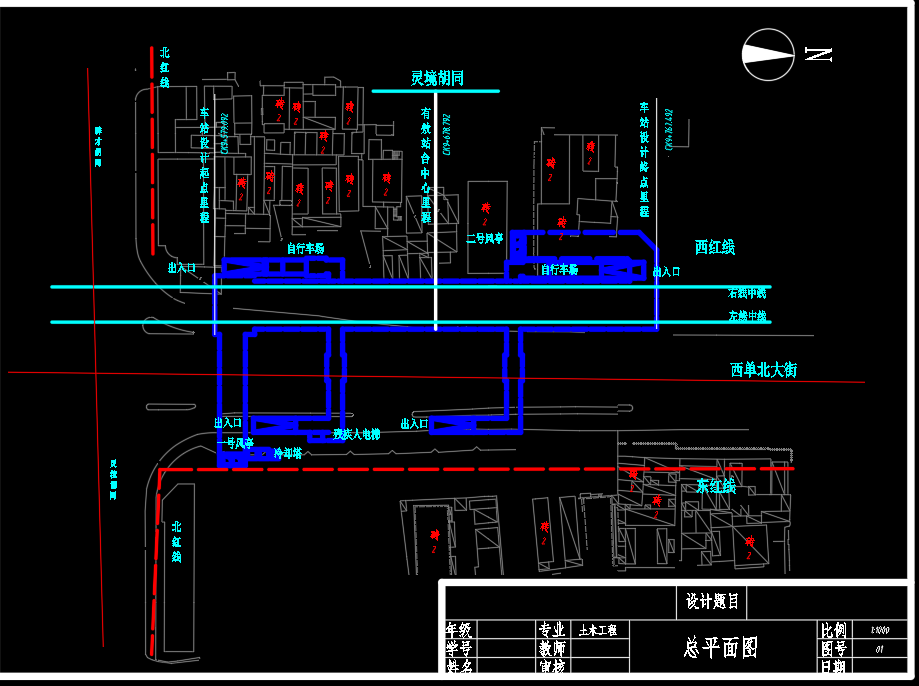 北京某地铁车站规划与设计,地下双层岛式车站总长188.4 m总宽度20.7 m(计算书、施组、CAD图10张)