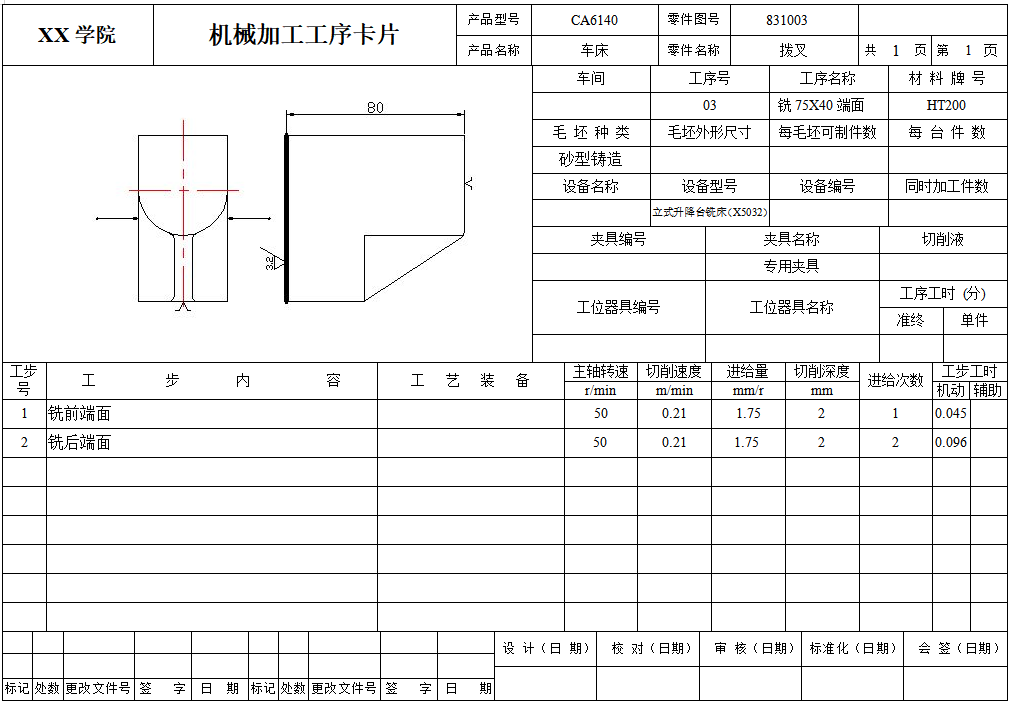 CA6140车床拨叉工艺及铣75×40端面夹具设计(831003)【说明书+CAD图纸+1张工序卡+过程卡】