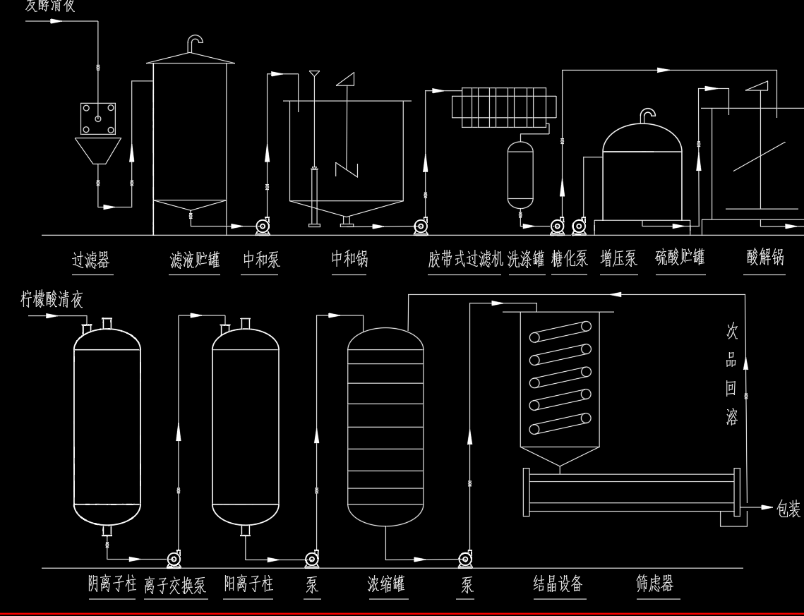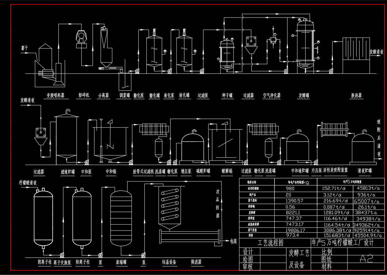 柠檬酸发酵工艺流程示意图 (年产5万吨柠檬酸工厂设计)