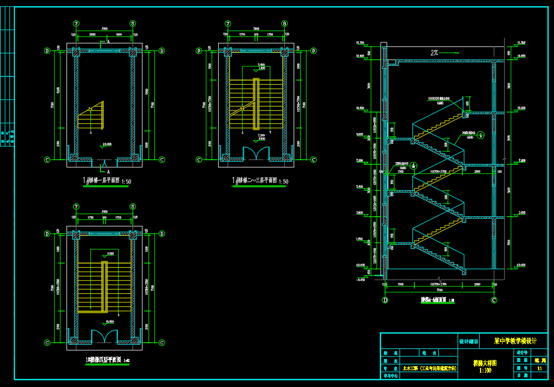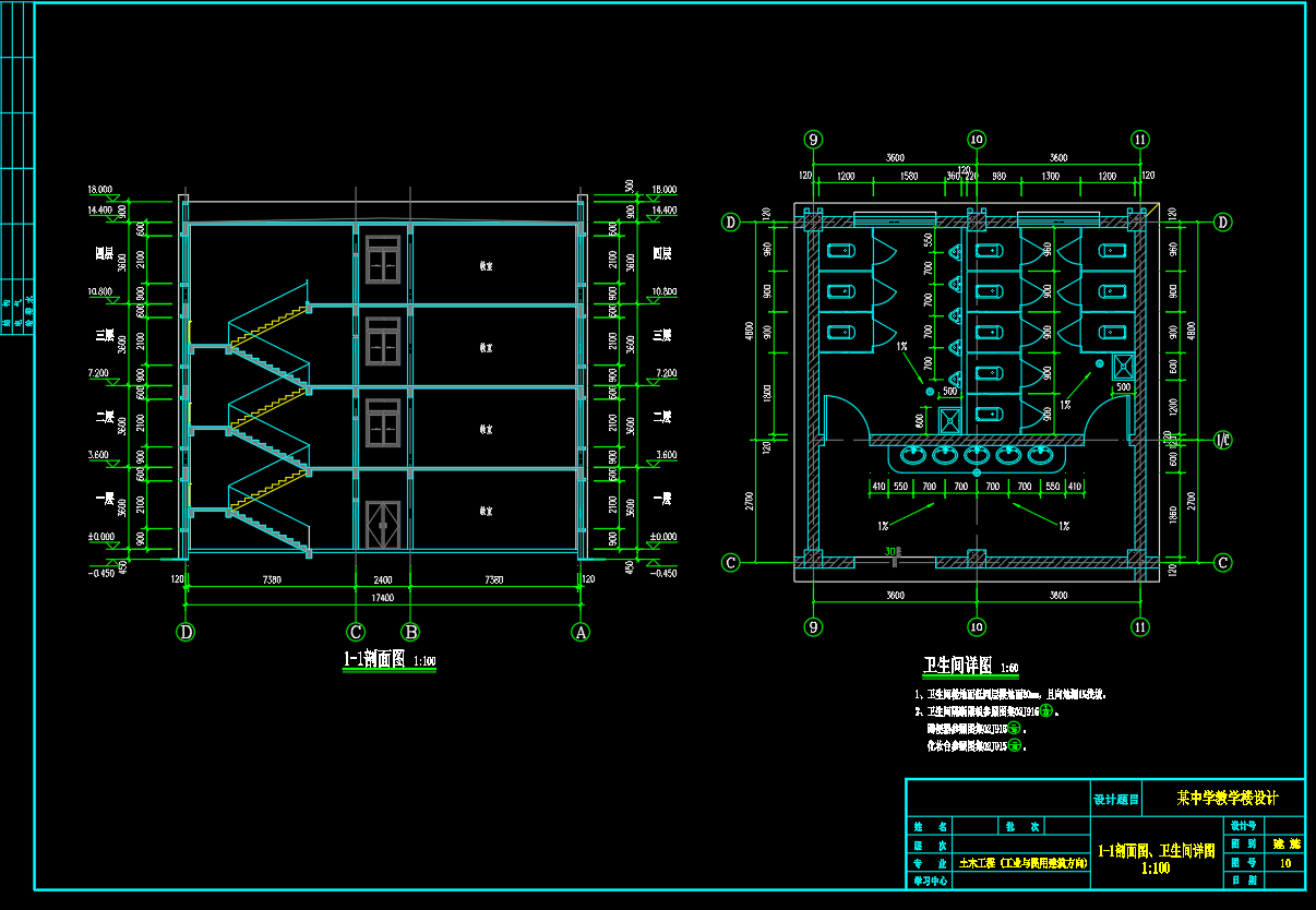 浙江省某市4层中学教学楼全套设计(2700平左右,含计算书,建筑图,结构图)