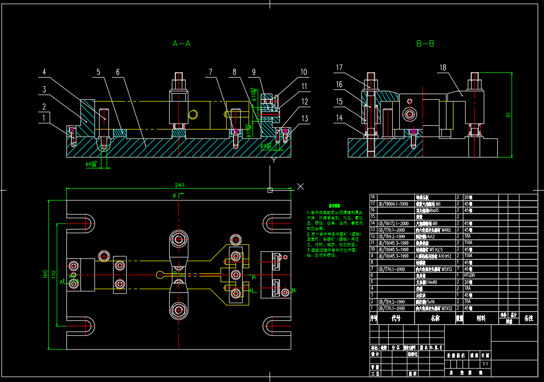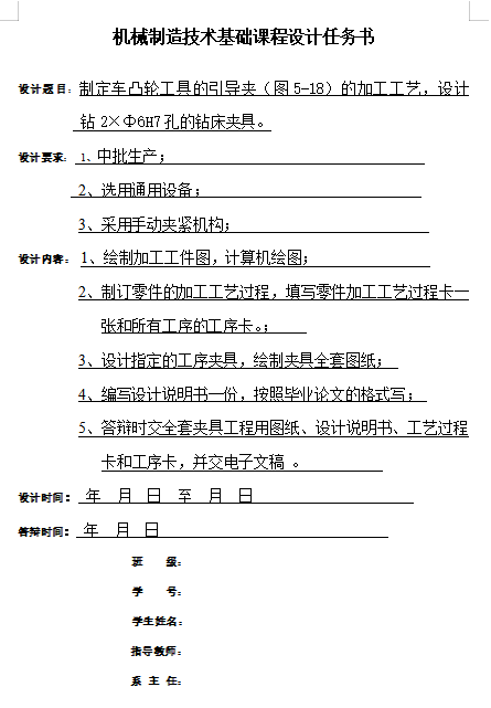 制定车凸轮工具的引导夹(图5-18)的加工工艺,设计钻2×Ф6H7孔的钻床夹具课程设计 (说明书+CAD图纸+任务书+工序卡11张+过程卡)