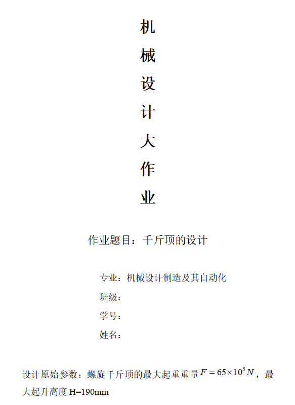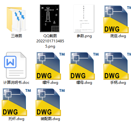 螺旋千斤顶的设计资料包含三维模型、DWG图纸及计算书,直观展示了其核心结构。三维图便于观察整体装配与零件关系,DWG图纸则提供了精确的二维表达。计算书严谨校核了螺杆稳定性、螺纹强度及底座支承等关键环节,确保其满足额定举升能力与自锁可靠性。这套资料将抽象理论与具体设计结合,对理解此类经典机械装置的工作原理与设计要点很有帮助,是一份实用的学习资料。
