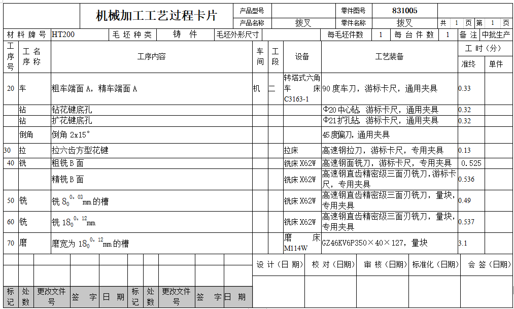 机械制造工艺学课程设计——设计”CA6140车床拨叉831005”零件的机械加工工艺规则及工艺装备(说明书+CAD图纸+三维图+工序卡)