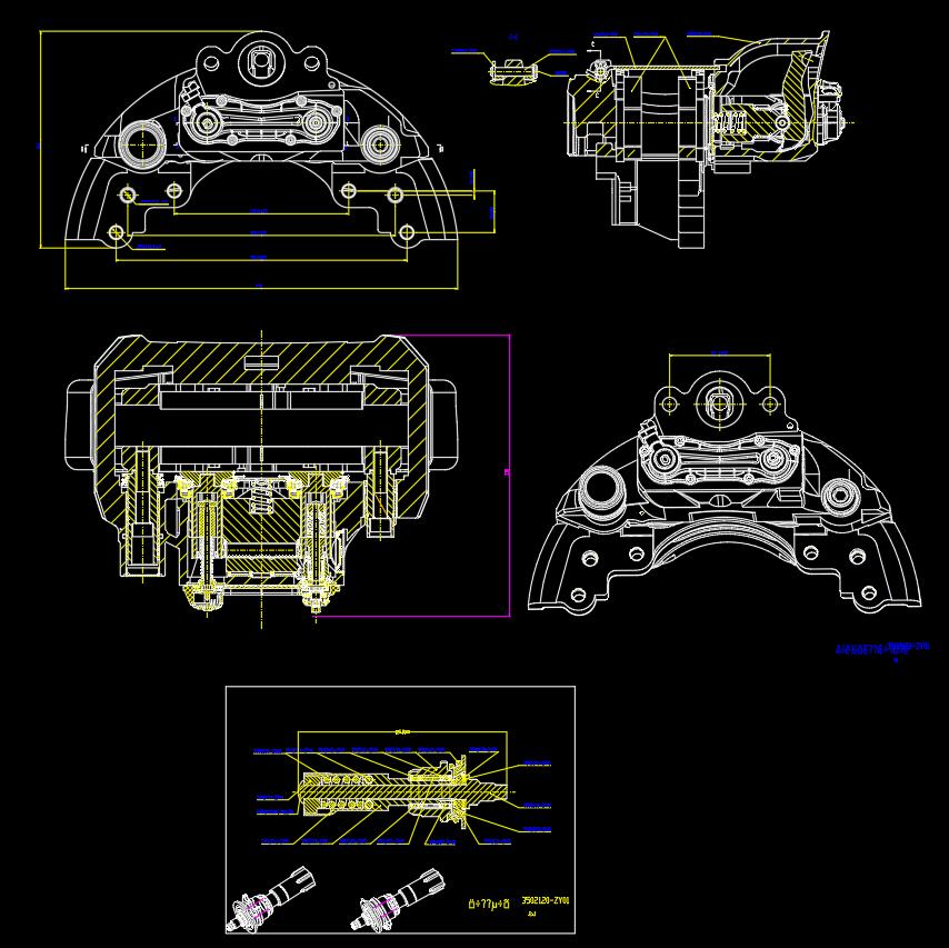 这份关于钳盘式制动器的学习资料,重点展示了其核心结构。图纸清晰呈现了制动钳体、摩擦衬块及制动盘等关键部件的装配关系。这种制动器通过液压驱动钳体夹紧旋转的制动盘,利用摩擦力实现高效制动。其开放式结构散热性能好,且维护简便。图纸为理解这一成熟制动方案提供了实用的视觉参考。