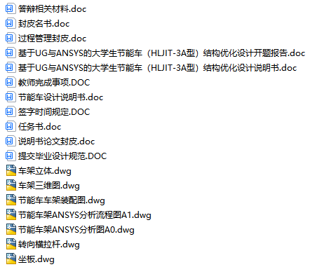 毕业设计 基于UG与ANSYS的大学生节能车结构优化设计(说明书+7张CAD图纸+开题报告+任务书+答辩相关材料)