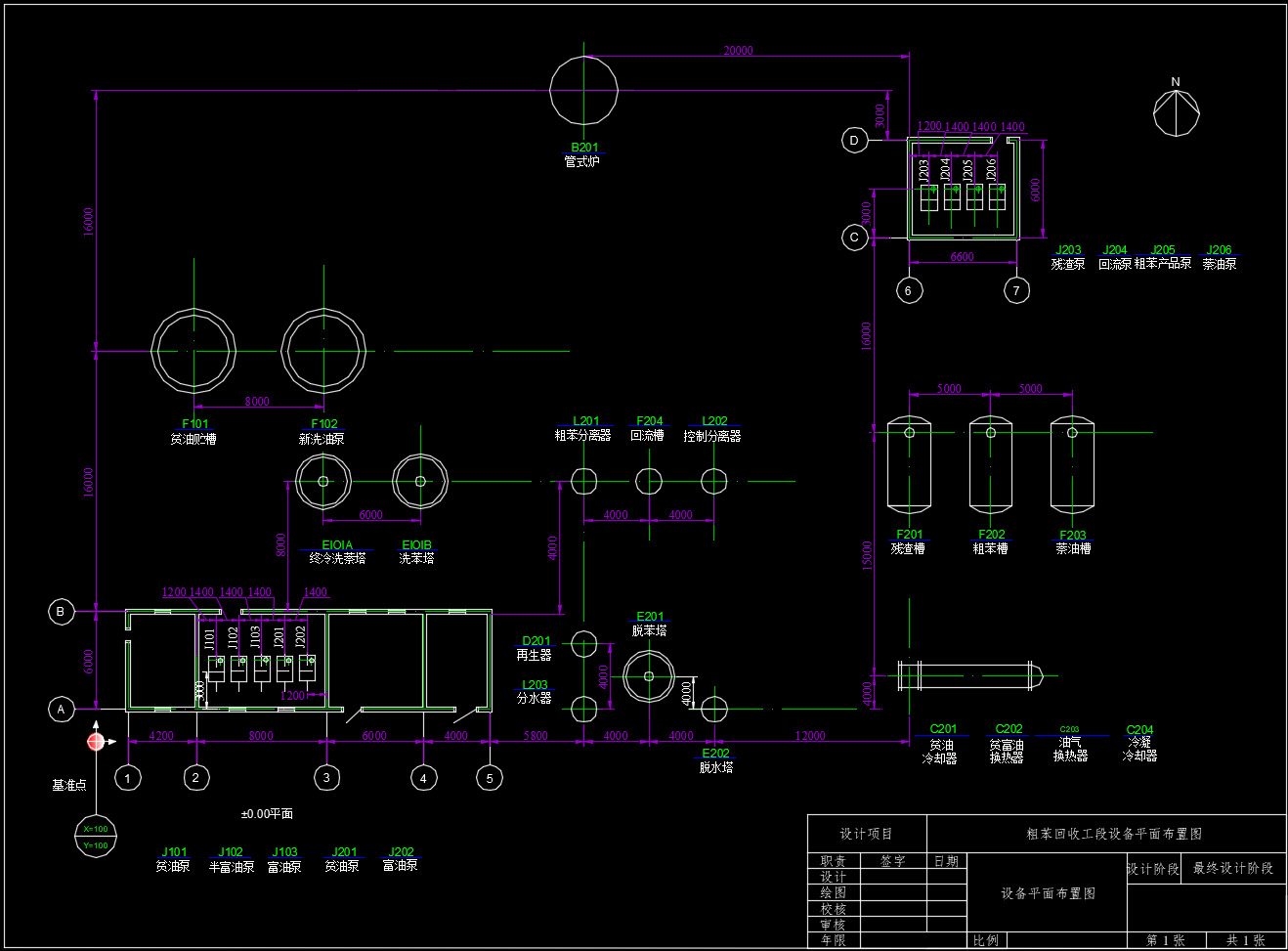 粗苯回收工段设备平面布置图(CAD)