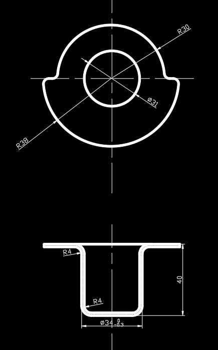 深圆筒拉深模具的CAD图纸,直观展现了从板料到成形件的关键过渡。图纸精确定义了凸模、凹模及压边圈的结构与配合关系,核心在于控制材料流动,防止起皱与拉裂。严谨的间隙设定、圆角半径及模具轮廓线,直接决定了拉深件的尺寸精度与表面质量。这套图纸是理解单工序拉深工艺与模具构造的实用资料,对掌握如何通过结构设计实现稳定成形具有重要参考价值。