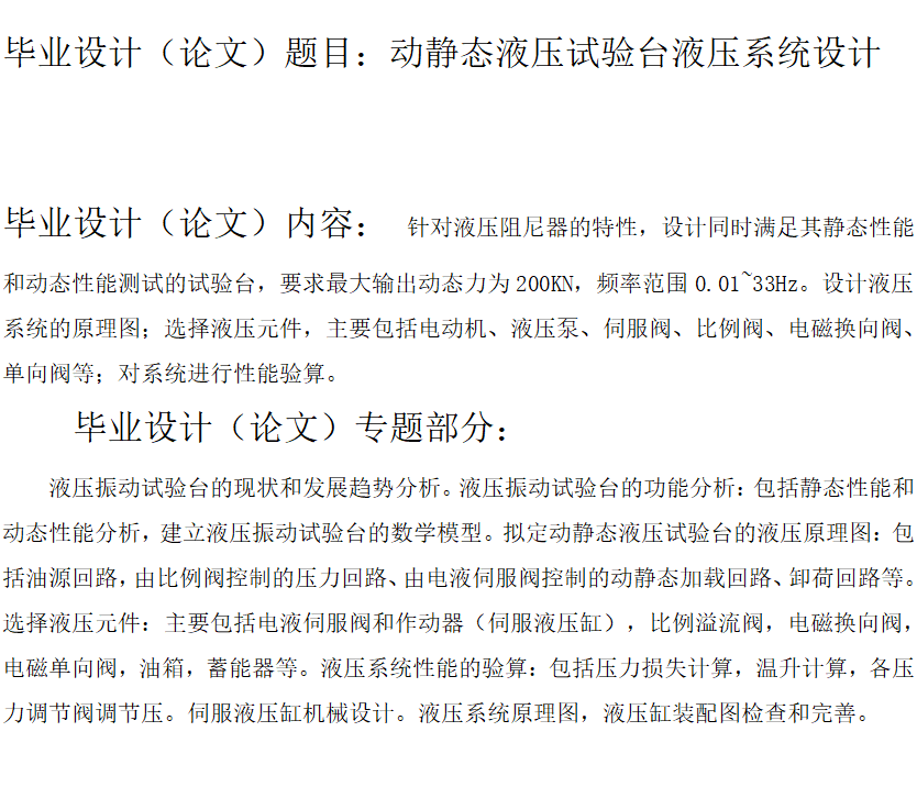 动静态液压试验台液压系统设计(说明书+CAD图纸+任务书+答辩PPT)