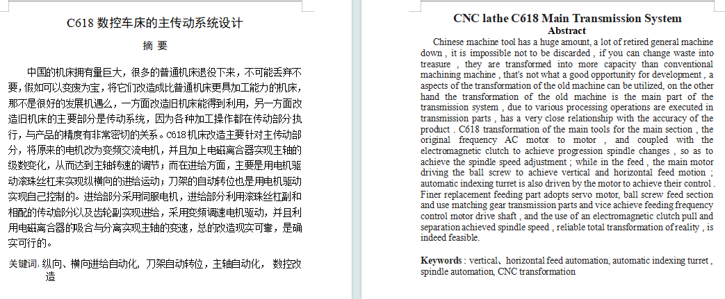 C618数控车床的主传动系统设计【毕业设计(论文)+CAD图纸+开题报告+外文翻译】