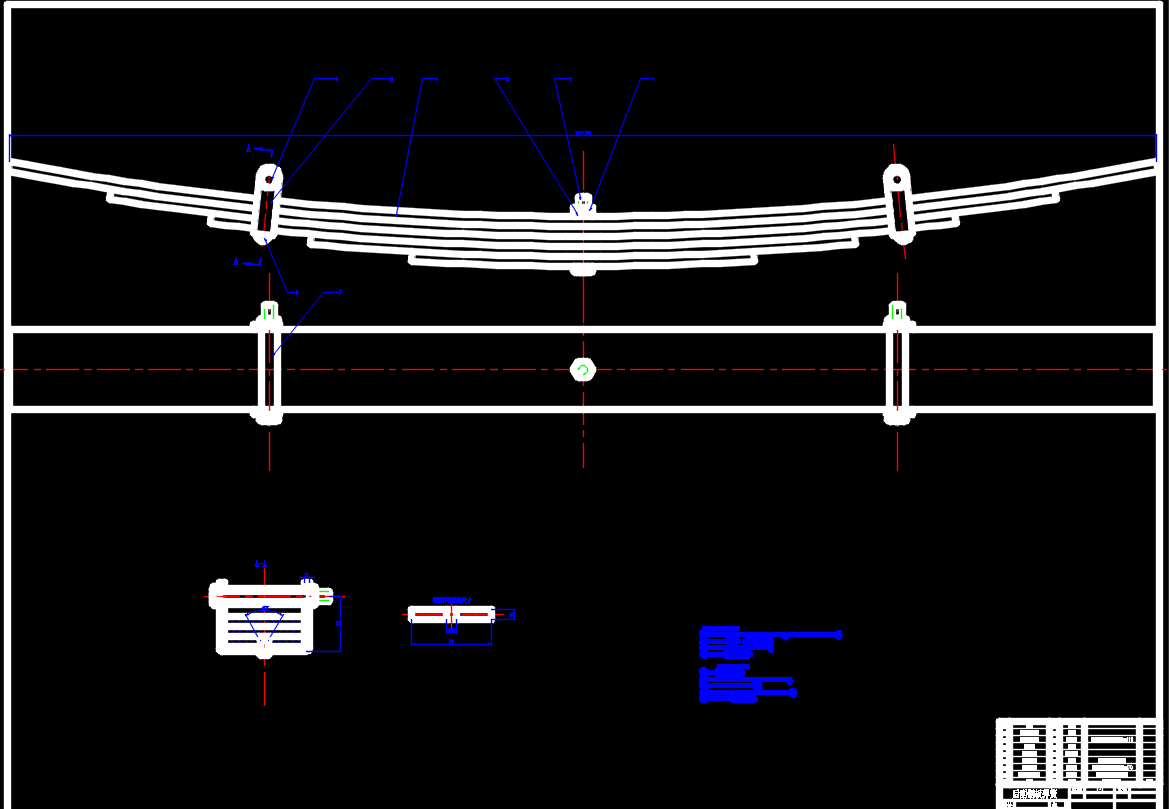 钢板弹簧毕业设计(论文+9张CAD图纸) 设计的主要参数:装载质量:6000kg,整备质量:3840kg,空载时:前轴负荷:1690kg 后轴负荷:2150kg,满载时:前轴负荷:3444kg 后轴负荷:6396kg,轴距:3300mm
