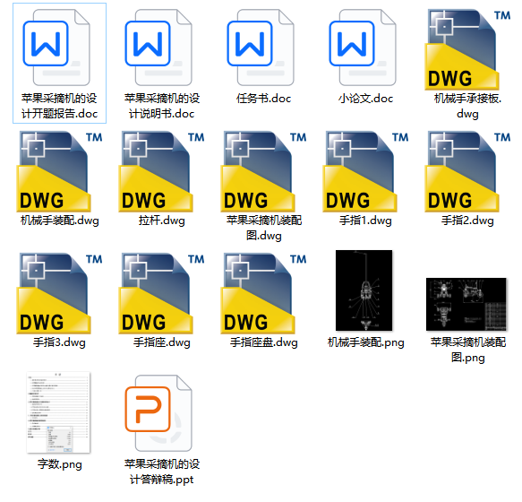 苹果采摘机设计-轮式小车式采摘机械手(设计说明书+9张CAD图纸+开题报告+任务书+小论文+答辩ppt)