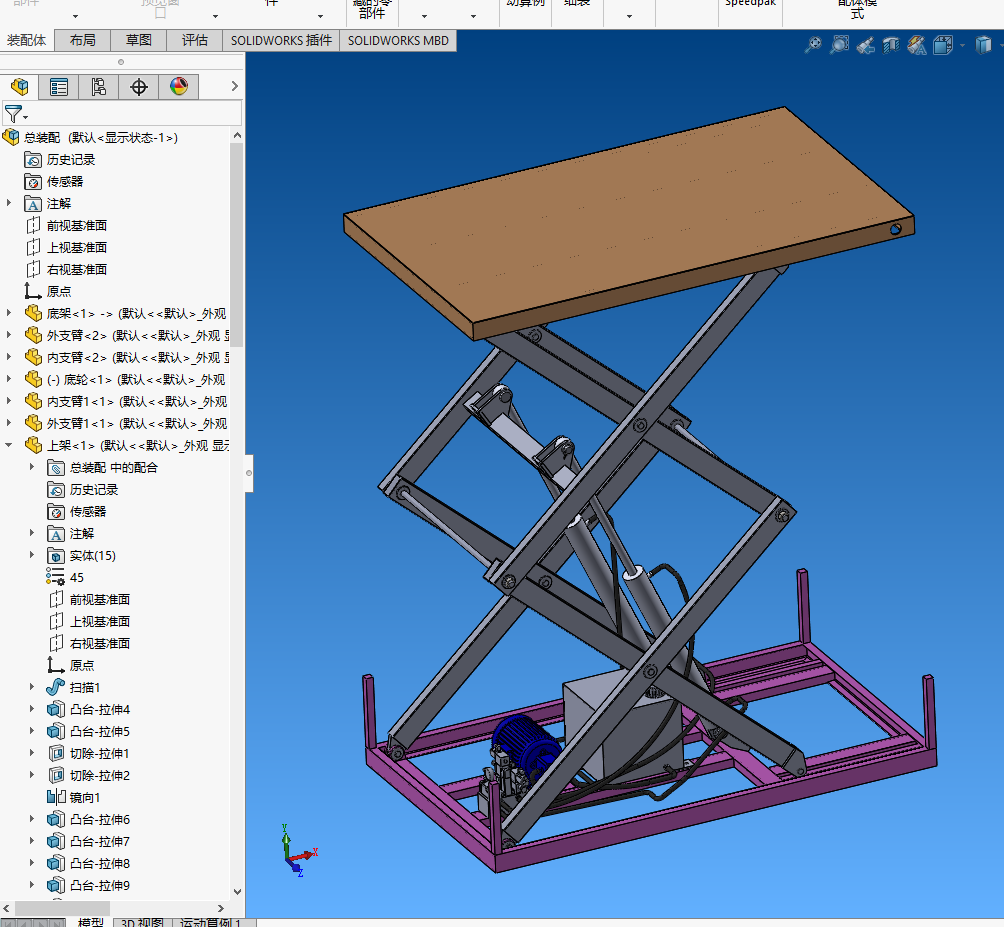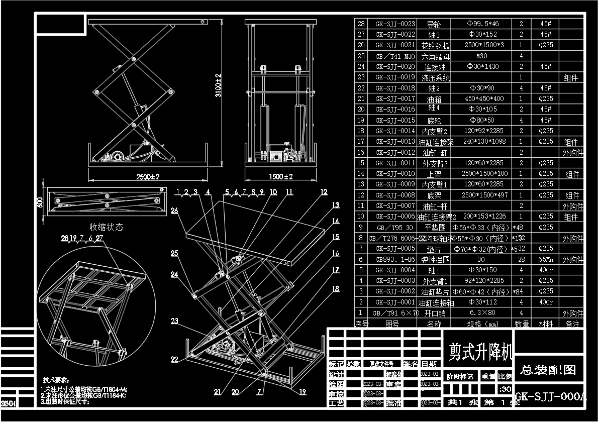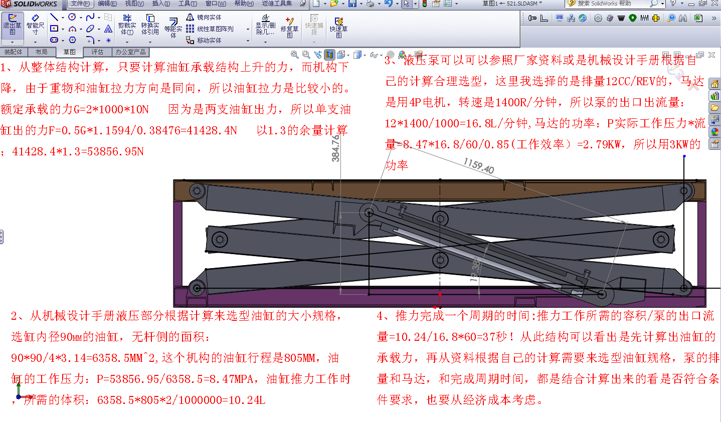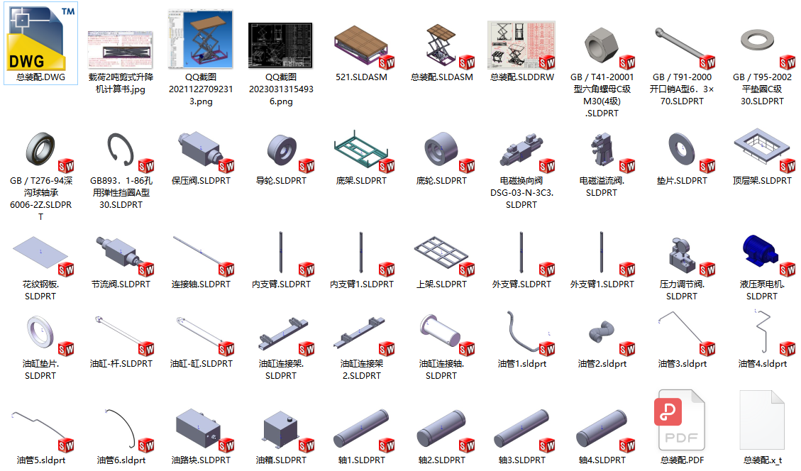 载荷2吨剪式液压升降台3D模型CAD总图含计算书
