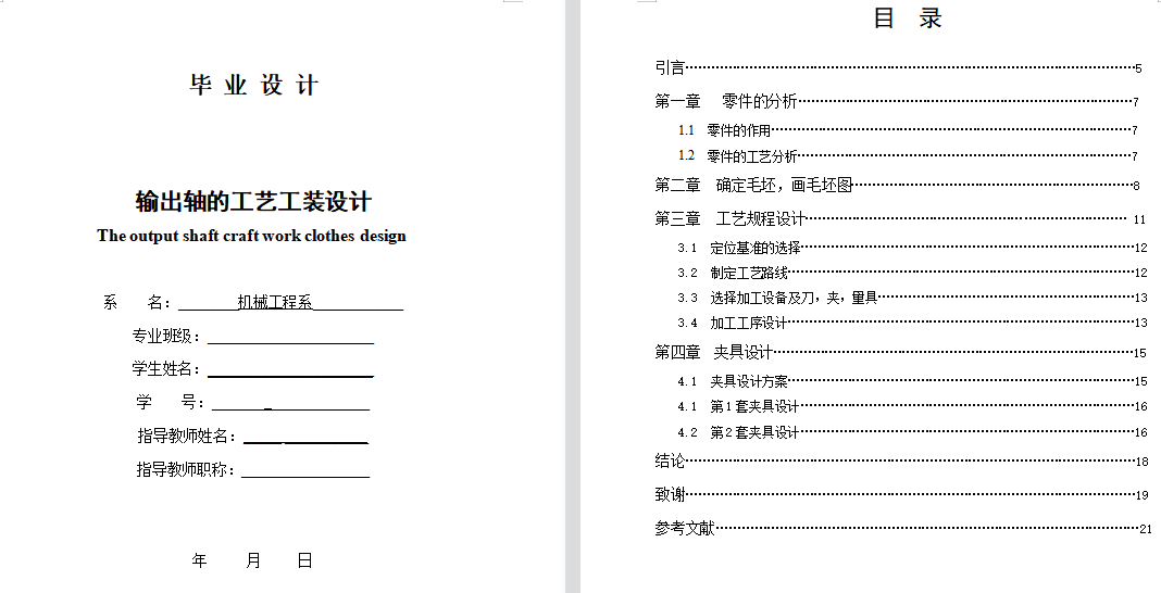 输出轴铣槽夹具设计(说明书+CAD图纸+工序卡+过程卡)