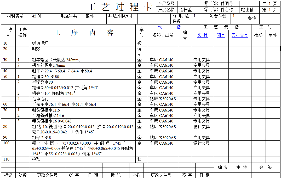 输出轴铣槽夹具主要用来定位和夹紧零件,确保铣槽时零件稳固,加工精度有保障。说明书会讲清夹具结构、操作步骤和注意事项;CAD图纸能直观展示各零件尺寸和装配关系;工序卡明确加工顺序、刀具选择等关键步骤;过程卡则记录加工中的数据,方便追溯调整。这些学习资料能帮着把设计思路落实,让加工过程更顺畅,提升效率。
