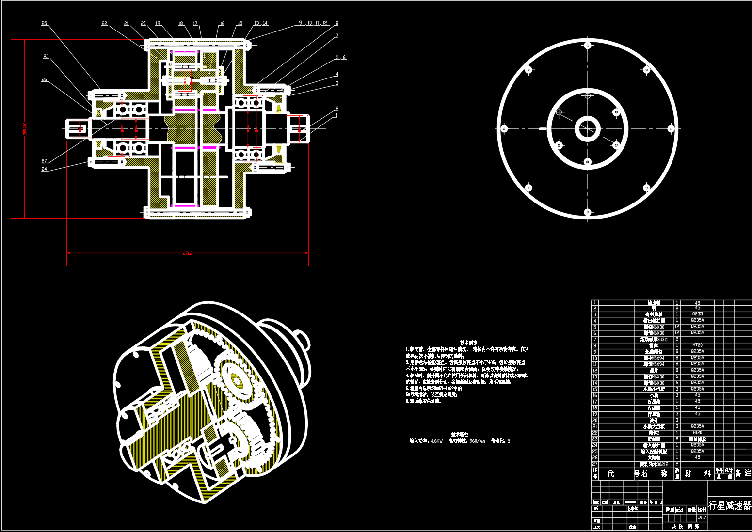 单级ngw型行星减速器的设计【n=960,p=4.6,i=5】【课程设计说明书+proe三维+3张cad图纸】