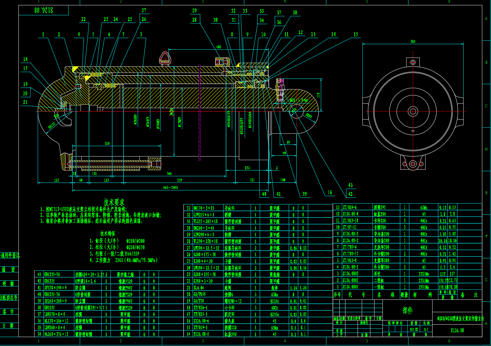 煤矿用Φ280-200型液压支架双伸缩立柱油缸图纸【CAD+CAXA】