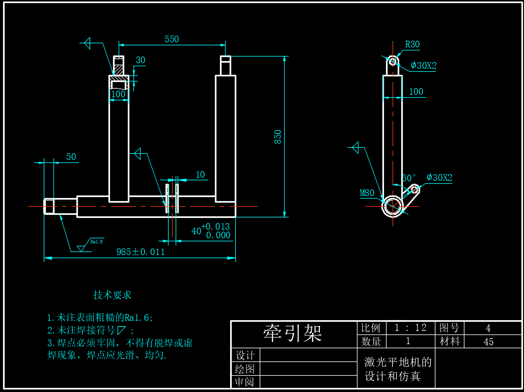 激光平地机的设计(设计说明书+CAD图纸+SW三维+stp+开题报告+任务书+答辩PPT+中期检查表)