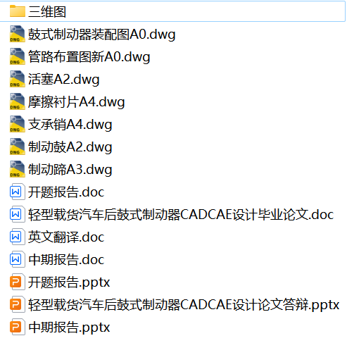 轻型载货汽车后鼓式制动器设计(论文+CAD图纸+CATIA三维图+开题报告+翻译+答辩) 备注:只有部分三维图,请看预览