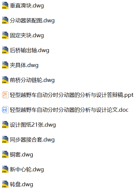 轻型越野车自动分时分动器的分析与设计【论文、CAD图纸、答辩稿】