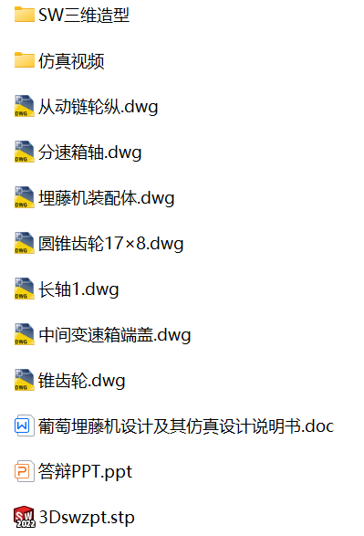 葡萄埋藤机设计及其仿真模型【说明书、CAD图纸、SW三维、仿真视频、答辩PPT】