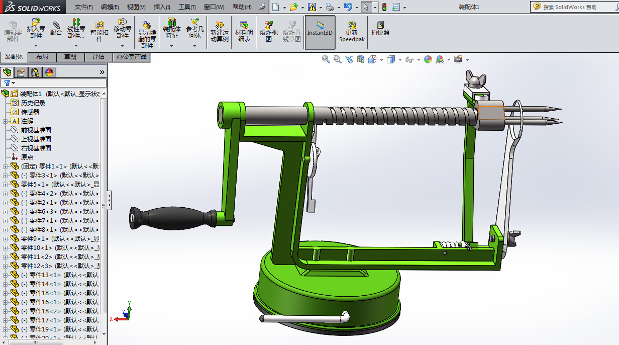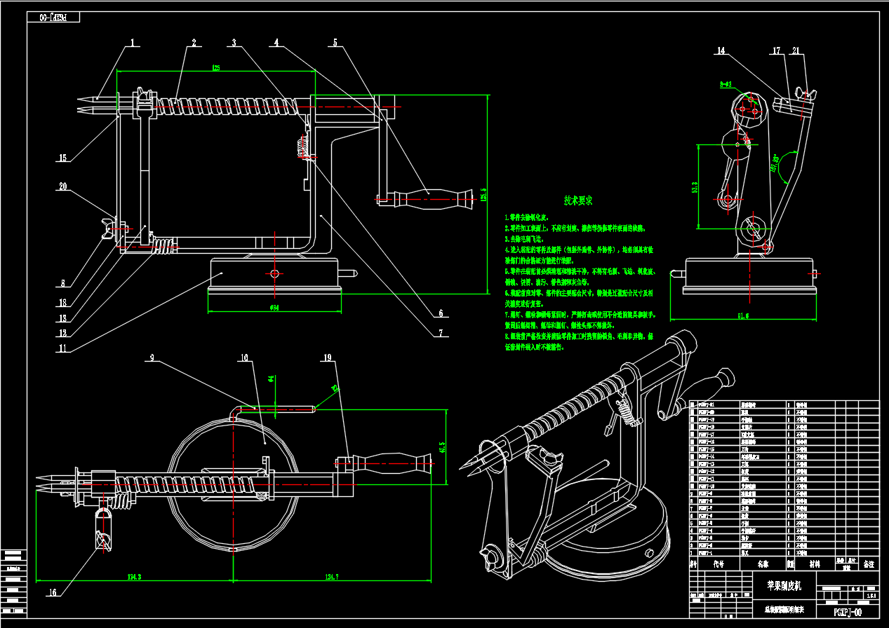 苹果削皮机的设计(手动水果去皮机)【设计说明书+14张CAD图纸+SW三维+三维通用格式+答辩稿PPT+任务书】