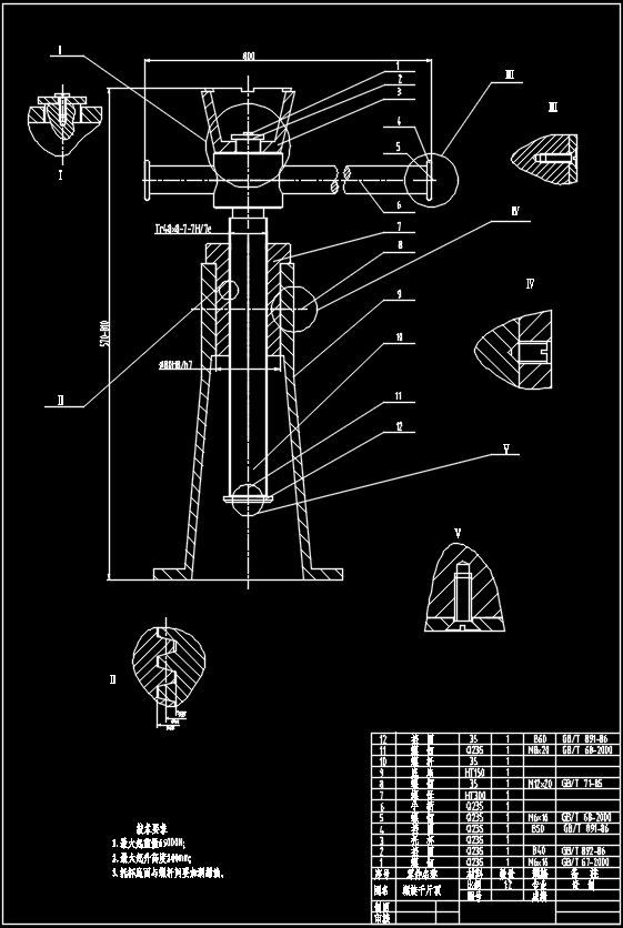 汽车用螺旋千斤顶设计【说明书+6张CAD图纸】 最大起重量65000N;最大起升高度240mm;