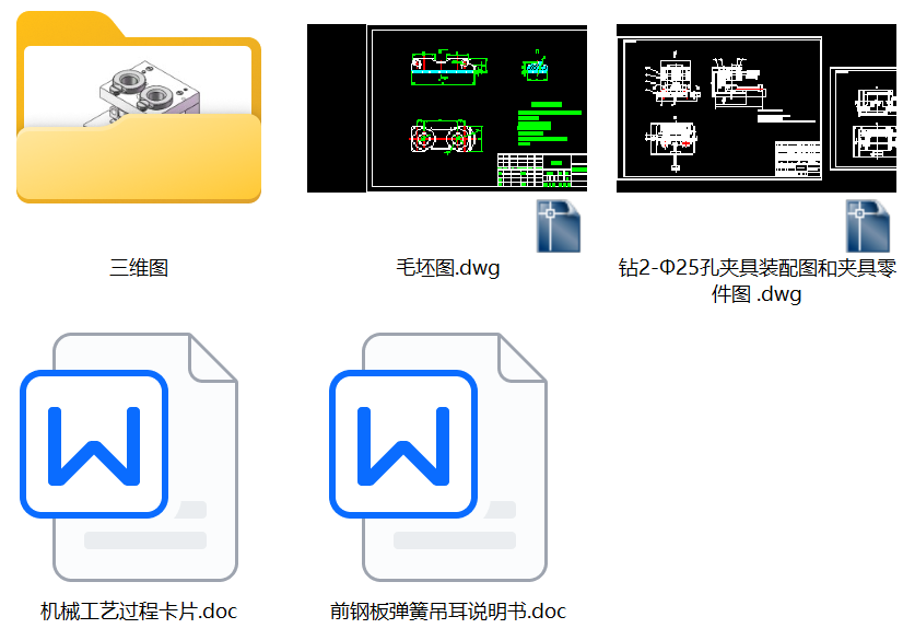 前钢板弹簧吊耳加工工艺及钻2-φ25孔夹具设计【说明书+三维SW+CAD图纸+工序卡1张+过程卡】