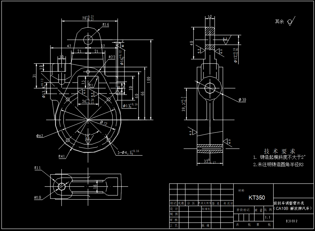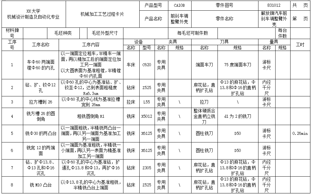 前刹车调整臂外壳加工工艺及铣φ12孔端面夹具设计【说明书+CAD图纸+工序卡+过程卡】
