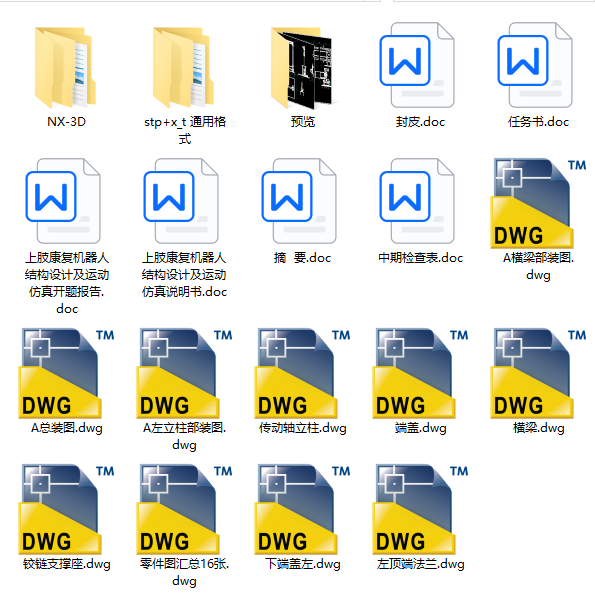 上肢康复机器人结构设计及运动仿真【说明书+CAD图纸+UG NX三维+stp x_t 通用格式+开题报告+任务书+中期检查表】