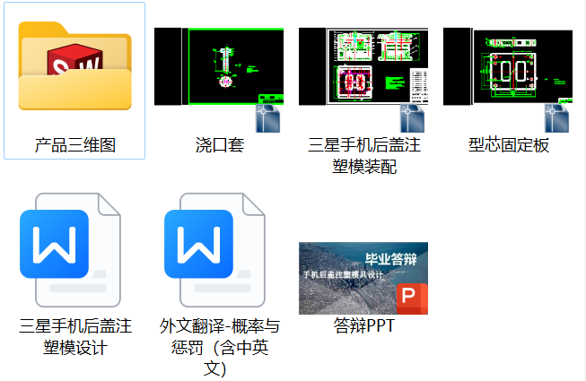 三星手机后盖注塑模设计【说明书、CAD图纸、答辩PPT、外文翻译】——备注:此份资料三维图只含一个产品图