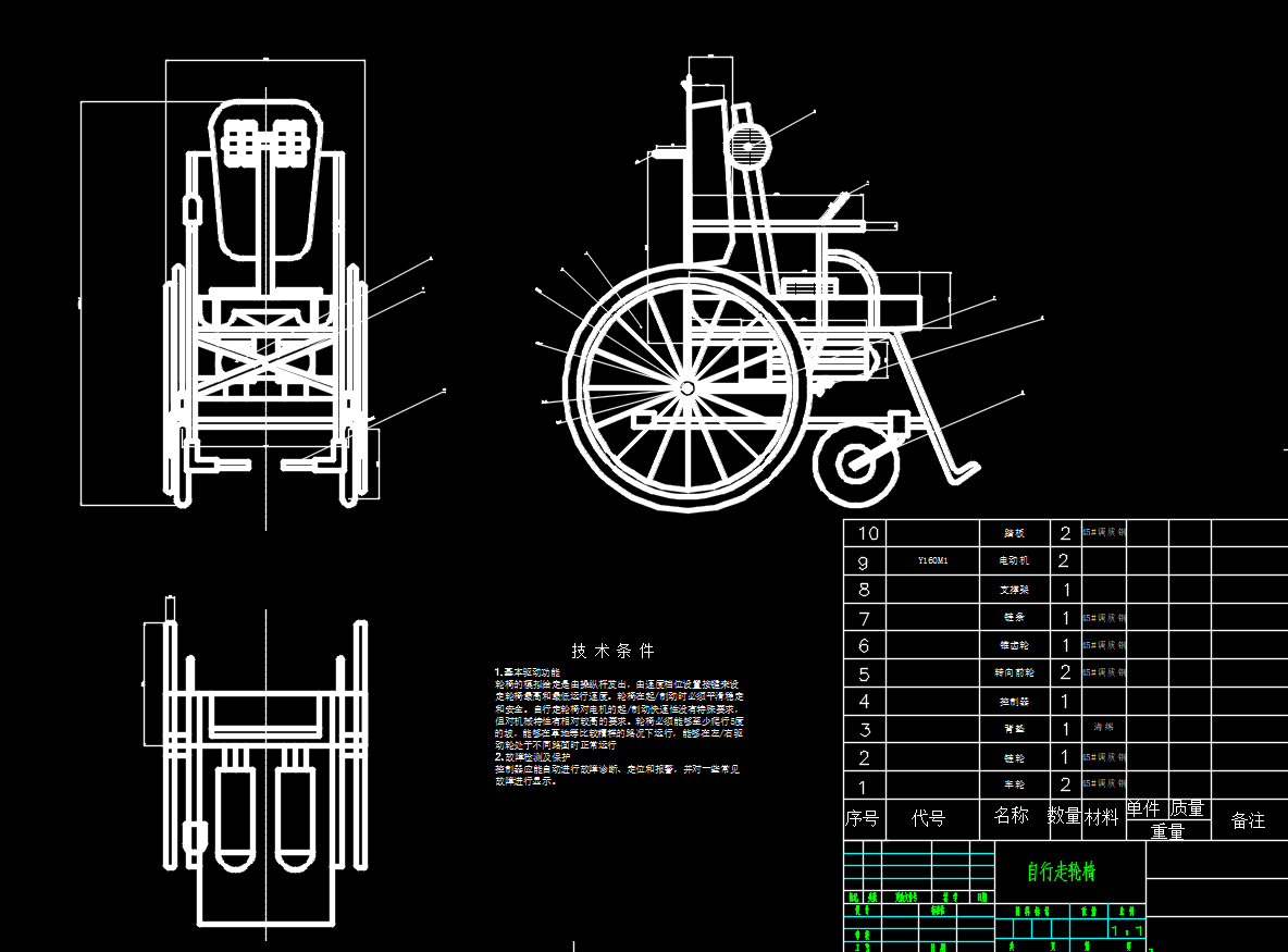 自行走轮椅(论文+CAD图纸+开题报告+任务书+翻译) 电动残疾人轮椅设计 残疾人电动轮椅设计