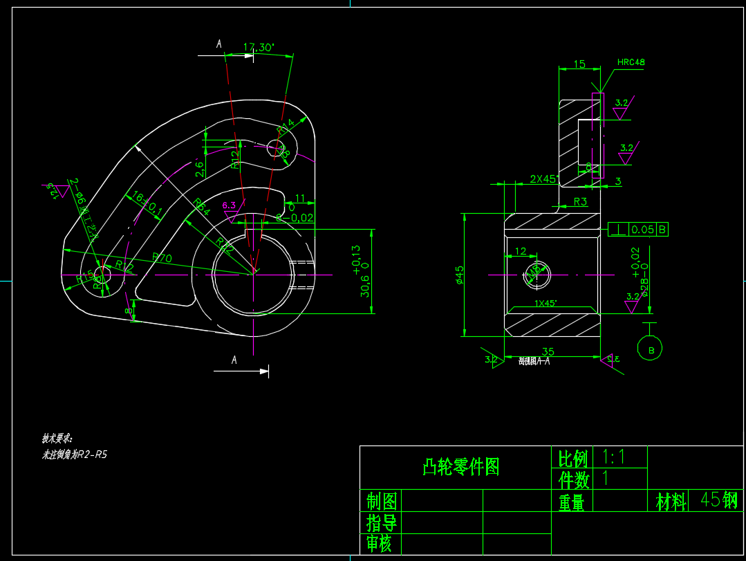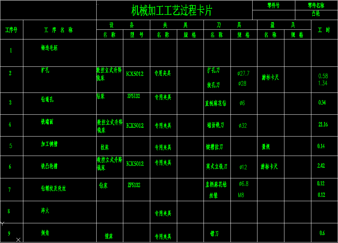 凸轮零件的机械加工工艺规程及夹具设计(课程设计说明书+CAD图纸+工序卡+过程卡)