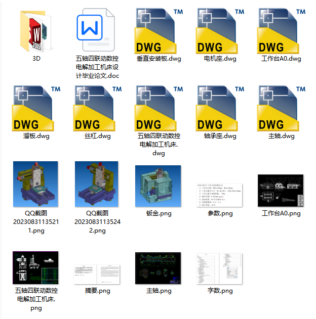 五轴四联动数控电解加工机床 (毕业论文+CAD图纸+SW三维+STEP)