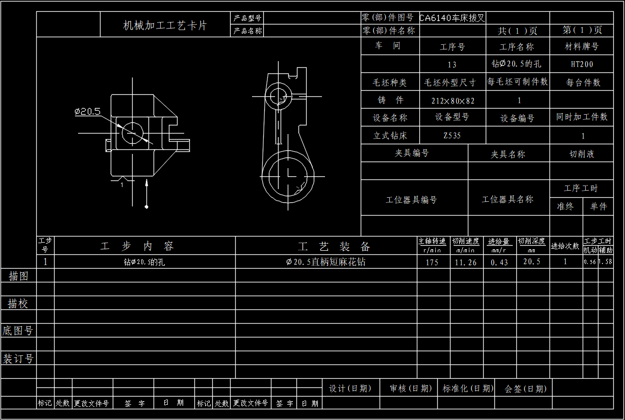CA6140车床拨叉工艺及钻M22孔夹具设计【说明书+CAD图纸+SW三维+1张工序卡+过程卡】