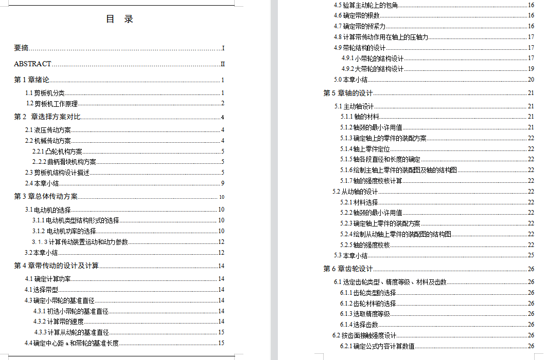本科毕业设计——剪板机结构设计(论文+CAD图纸)