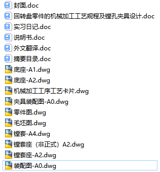 回转盘零件的机械加工工艺规程及镗孔夹具设计(说明书+CAD图纸+实习日记+外文翻译+工序卡 过程卡)