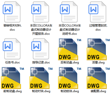 毕业设计 丰田COLLORA车盘式制动器设计(设计说明书+CAD图纸+开题报告+任务书+答辩相关材料)
