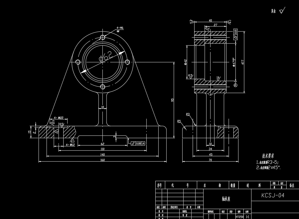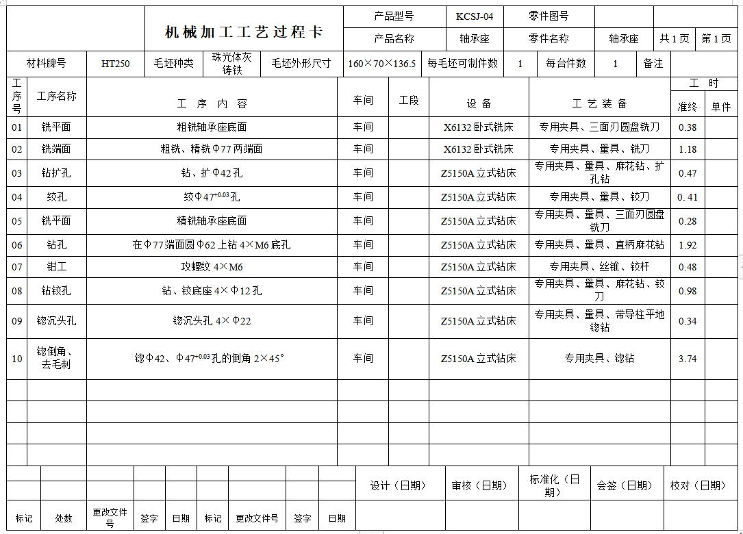 课程设计 KCSJ-04 轴承座零件的工艺规程及工艺装备设计(设计说明书+CAD图纸+工序卡10张+过程卡)