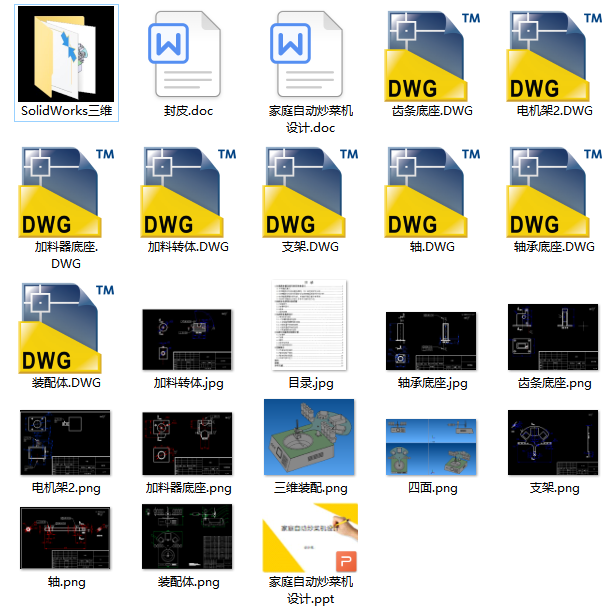 家庭自动炒菜机设计(论文+CAD图纸+SolidWorks三维+ppt)