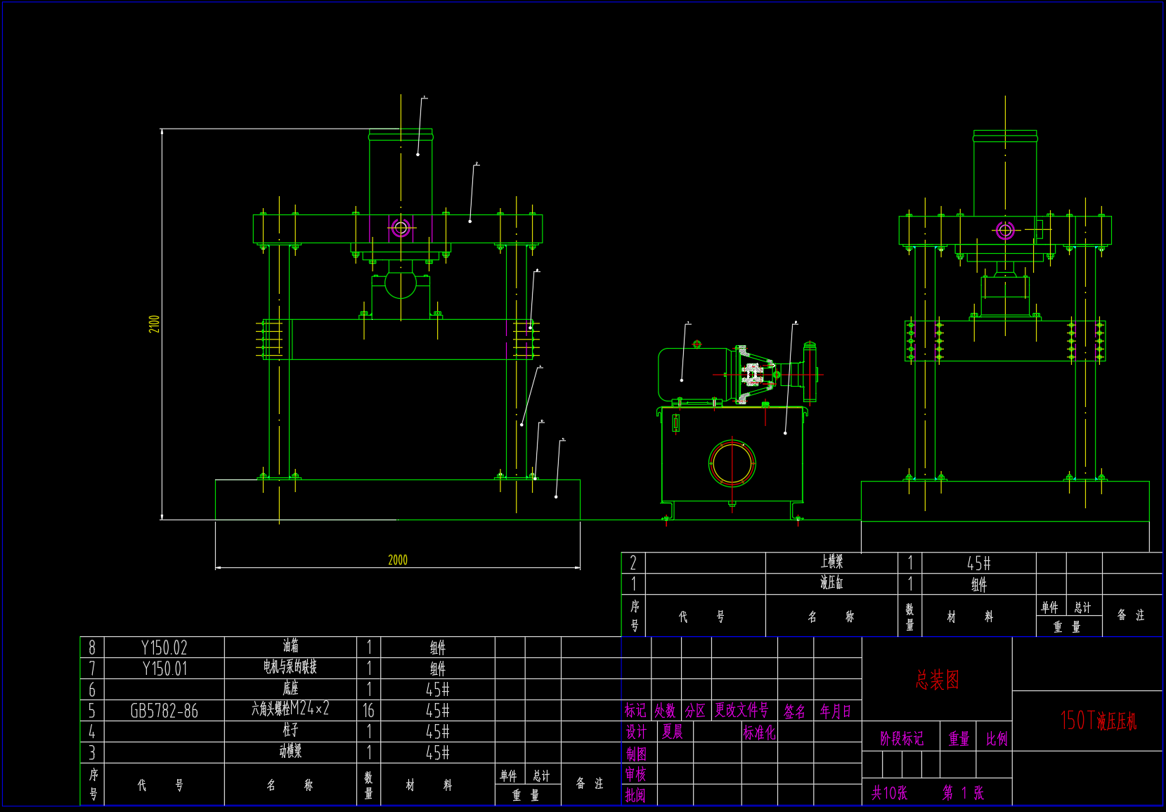 150T液压机设计包含计算与图纸,其核心在于通过严谨计算确保结构强度与稳定性。计算过程涵盖关键部件的受力分析与选型校核,为整套图纸提供理论依据。图纸则直观呈现布局、装配关系及加工要求,二者紧密结合,使设计兼具可靠性与可行性。这套学习资料能帮助理解如何将理论计算转化为实用的设计成果,对掌握液压机设计流程很有参考价值。
